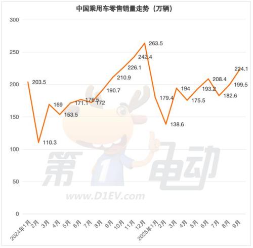 乘联会数据显示,9月全国乘用车市场零售224.1万辆,同比增长6.3%,环比增长11.0%。其中,9月新能源乘用车市场零售129.6万辆,同比增长15.5%,环比增长16.2%,零售渗透率升到57.8%,呈现出由报废更新、置换更新叠加新能源免征购置税等普惠政策托底背景下的新能源平稳增长。