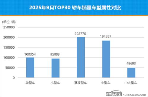 9月,紧凑型车销量反超中型车,位列榜首,环比上涨17.8%。微型车本月销量完成环比“三连涨”,突破10万辆,创造年内最高纪录。相比之下,小型车是9月份唯一销量环比下降的车型,较8月份微降0.1%。