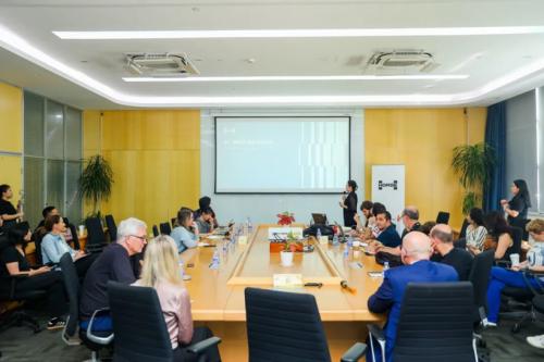 浩思动力子业务集团极光湾科技全球CEO王瑞平、浩思动力首席传媒官Helene Carlson等在内的公司管理层与资深技术专家共同接待了雷诺集团欧洲媒体代表团,与来自英国、法国、意大利、西班牙在内的20多位媒体记者、内容创作者进行了深入交流,共同探讨多元汽车动力技术的最新进展与未来趋势。