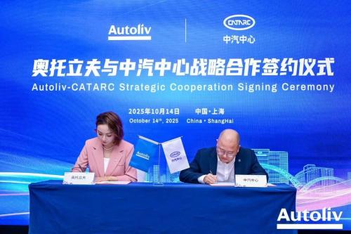 10月14日,奥托立夫与中国汽车技术研究中心有限公司(中汽中心)在上海签署战略协议,共同推动中国及全球汽车安全标准与创新。此次合作将汇聚双方能力,建立一个整合国内与国际的服务体系,以识别并提升所有在中国生产车辆的安全标准。