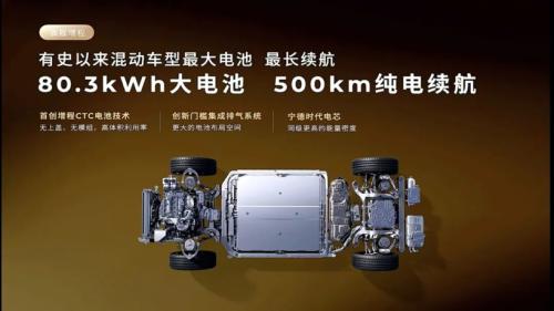 同一车型,继续增程与纯电两条腿走路。前者搭载80.3度电池包,纯电续航达到500公里,并辅佐40L油箱;后者搭载115度电池包,纯电续航超700公里。