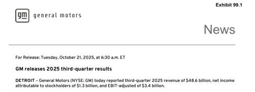 10月21日,通用汽车公布,今年第三季度,其全球营收同比持平,达486亿美元;调整后的息税前利润(EBIT)同比下降18%至34亿美元;由于该公司缩减电动汽车生产计划产生一次性费用,净利润同比大跌57%至13亿美元。据悉,自今年4月份关税政策实施以来,通用汽车已累计损失11亿美元。