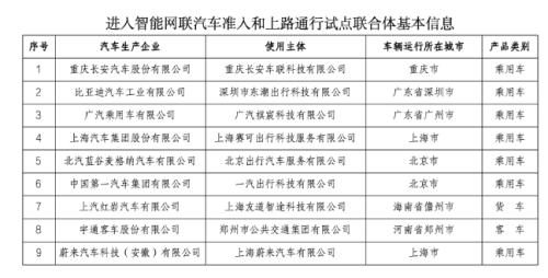 2024年6月4日,工信部网站发布《四部门有序开展智能网联汽车准入和上路通行试点》的通知,公布9家首批智能网联汽车准入和上路通行试点联合体,既有传统车企,也有造车新势力,涵盖乘用车、客车,以及货车三大类。