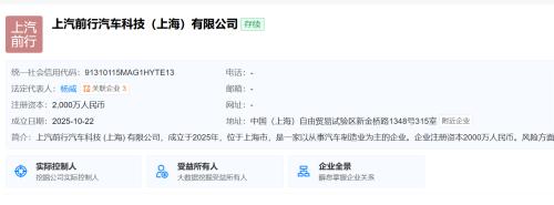 近日,天眼查显示,上汽集团全资控股的上汽前行汽车科技(上海)有限公司正式成立,注册资本2000万元人民币,其业务范围覆盖汽车零部件研发、智能输配电及控制设备销售、充电桩销售以及计算机软硬件及辅助设备批发等多个关键领域。