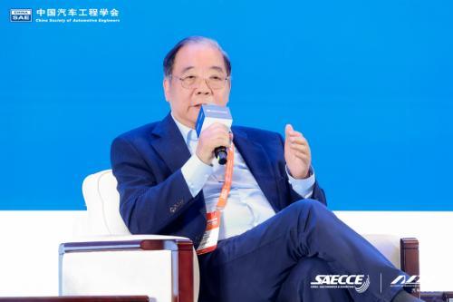 中国汽车工程学会副理事长、清华大学汽车产业与技术战略研究院院长、FISITA终身名誉主席赵福全主持尖峰对话