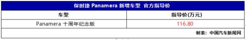 中国汽车新闻网讯近日,保时捷Panamera十周年纪念版正式上市,指导价格为116.8万元。新车针对其底盘和舒适性以及配置等进行了一定升级,同时在细节上带有特别版车型专属logo。