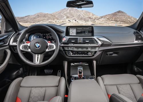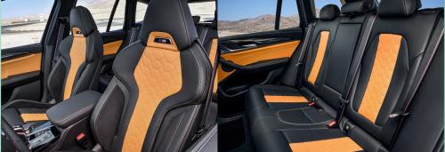 内饰方面,X3M和X4M在中控台布局、设计和功能配置方面保持一致。两款车均采用了大量M系车型的专属装备,包括M仪表、M真皮方向盘(带换挡拨片和M按钮)、M挡把、红色启动按钮及碳纤维饰条等等。