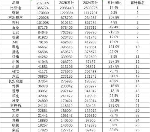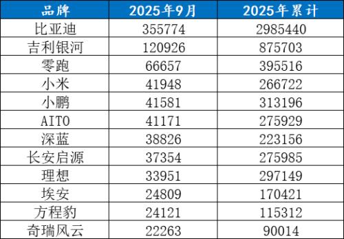 我们耳熟能详的比亚迪,凭借其长期在电动技术领域的专注,已成功将品牌与新能源深度绑定。2025年累计销量近300万辆,同比增长14.4%,稳居市场榜首。其成功不仅源于技术积累,更得益于在消费者心中建立的专业电动车制造商的清晰认知。
