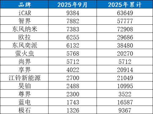 从2025年9月的销量数据切入,我们可以清晰地观察到三种颇具代表性的市场现象:分别是月销2万辆以上的品牌、月销在1-2万之间的品牌,以及月销1万辆以下的品牌。不难发现,传统巨头孵化新品牌的也会乏力、中高端阵营的虚假繁荣、以及新能源突围的普遍艰难。