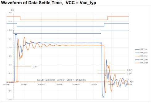 其认证测试不仅覆盖了CAN FD和CAN SIC常规认证测试,包括收发器延迟、dV/dt特性、静态阈值电压响应、阈值电压频率响应、单端S参数、静态测试等测试项目,还针对CAN SIC还额外增加了几项核心测试,考验芯片SIC电路的性能:SIC激活响应、总线电平精准度、信号对称性能、高速数据稳定性等。