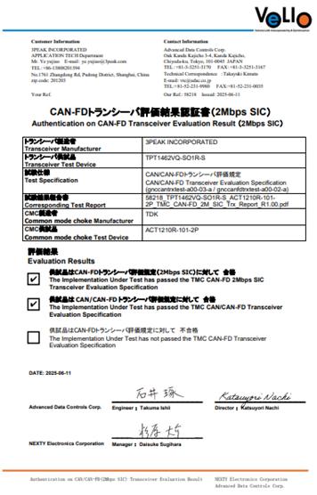 作为国产首颗通过VeLIO认证的CAN SIC收发器,TPT1462xQ全面满足CAN/CAN-FD及CAN SIC评估规范,尤其在2Mbps SIC模式下通信稳定性与时序精度均达到认证要求,为思瑞浦进入丰田等日系主流整车供应链奠定了关键基础。