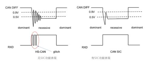 CAN SIC功能的核心价值在于解决CAN FD协议在复杂星型拓扑、高传输速率场景下的信号振铃问题。所谓振铃,是指因总线阻抗不匹配导致信号反射振荡,在高速通信时极易引发数据传输错误,严重影响车载系统稳定性。
