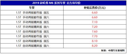 中国汽车新闻网讯7月10日,长城汽车官方宣布2019款哈弗M6正式上市,此次上市共推出4款车型,并提供国五和国六两种排放标准车型,指导价区间为6.60-8.20万元。相比老款车型,新车在造型设计上进行了一定调整。