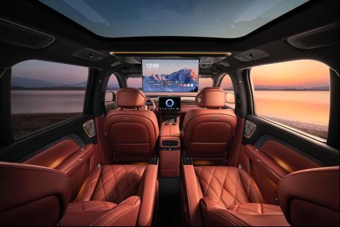 岚图泰山座舱的设计灵感源自东方山水,以山势为骨,塑造出座舱的大气与稳重;以川流为脉,贯通空间的韵律与灵动。座舱采用山海万象内饰设计,营造出浓郁的东方美学空间。当乘客安坐其中,就如同被山海怀抱,沉浸在一种稳定而包容的氛围之中,尽享舒适与惬意。