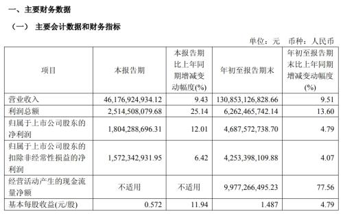 华域汽车前三季度净赚46.9亿元