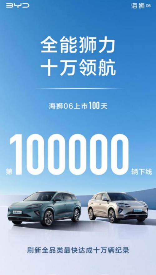10月31日,对于比亚迪海洋网旗下的“高能超享SUV”海狮06而言,是一个意义非凡的日子。在上市满第一百天之际,第十万辆整车顺利下线。这一里程碑式的突破,不仅让海狮06成为全品类车型中最快达成十万辆销量的现象级产品,更以惊人的“海狮06速度”,向汽车市场有力地证明了其无可撼动的爆款地位,为竞争异常激烈的主流SUV市场树立了全新的价值标杆。