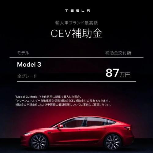 基于新的新能源汽车补贴政策,丰田bZ4X、日产Ariya/Leaf可获得85万日元的最高补贴金额,加上附加补贴,丰田bZ4X的实际补贴金额可达到90万日元。特斯拉则是新评估标准下进口车中唯一获得最高额度补贴的品牌,国家CEV补贴达到了87万日元,这或许与特斯拉在日本建立了广泛的超充网络有关。