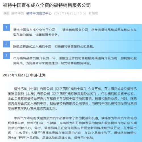 今年9月,福特中国正式宣布设立福特销售服务公司,未来长安福特、江铃福特以及福特进口车的销售和服务业务将合为一体,在同一家4S店可以买到所有在中国销售的福特车。