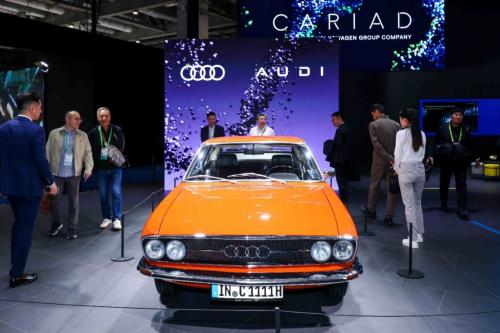 展台的左侧,奥迪旗下四环及AUDI双品牌让传奇与未来同频闪耀。全新AUDI E5 Sportback以奥迪轿跑经典曲线与本土创新科技,勾勒出智能电动豪华的全新姿态,奥迪A6L e-tron则凭借卓越的驾乘舒适性与长续航,诠释纯电出行的从容与力量。与它们同台的,是一位来自半个世纪前的“老朋友”——奥迪100 Coupé S。时至今日,它所承载的先锋精神仍启迪着品牌的进取之路。