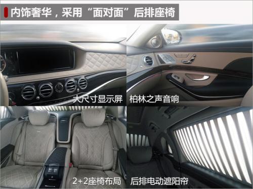 新车内饰部分移植了迈巴赫S600的设计风格,大面积真皮覆盖、柏林之声等顶级配置自然不必多说。Pullman后排座椅采用2+2面对面座椅布局,多项电动调节的航空座椅、车载冰箱、酒杯架、电动窗帘、中央控制区、独立靠枕、后排18.5英寸显示屏等豪华配置一应俱全。