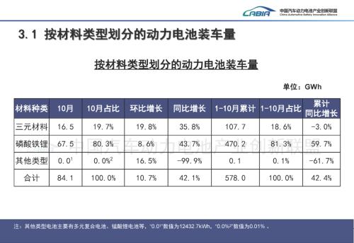不过值得注意的是,磷酸铁锂动力电池出口增速尤为迅猛,10月出口7.9GWh,同比增长128.7%;1-10月累计出口60.3GWh,同比增长58.7%,成为拉动动力电池出口增长的新动力。