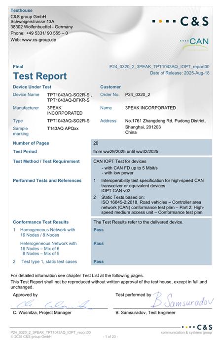 TPT1043AQ C&S认证测试结果