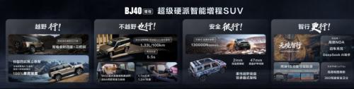 北京越野董事长王昊表示表示:“BJ40增程元境智行就是越野行!不越野也行!安全很行!智行更行!智行硬派SUV,就买BJ40增程。”