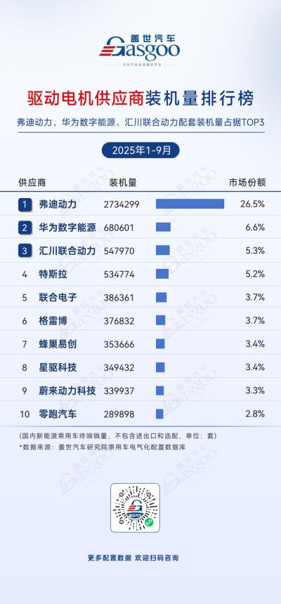 弗迪动力,2025年1-9月装机量2734299套,市场份额26.5%。