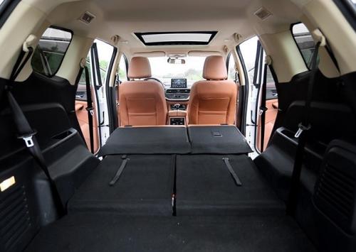 超长轴距意味着北汽幻速会有大的内部空间。坐过7座车的都知道,第三排上下车是难点。不过北汽幻速S7妥善地解决了这一问题,第二排座椅可前后滑动180mm,使得二、三排座椅均可全平放倒,方便了三排乘客上下车。