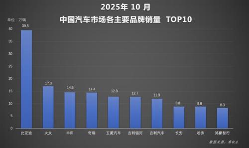 在这一浪潮中,比亚迪的领先优势愈发明显,前十月累计370万销量接近第二至第四名之和。其中,比亚迪汽车王朝网与海洋网10月销售39.5万辆,1-10月累计销量达338万辆,持续夯实规模基本盘。