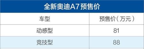 近日,有国内社交媒体曝光了疑似全新奥迪A7的预售价。据悉首批新车将推出3.0T动感型及竞技型,预售价分别为81万及88万。两款车型将标配QuattroUltra、矩阵大灯、全新3D全景影像、B&O音响、20寸轮毂等配置。