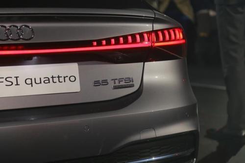 车尾方面依旧是全新A7的一大亮点,贯穿式的OLED尾灯点亮后效果极佳,当然相似设计已经运用在了在全新A8上。此外,新车在尾部还配有隐藏式的扰流板,在高速行驶时可以自动升级以提升车辆的稳定性。