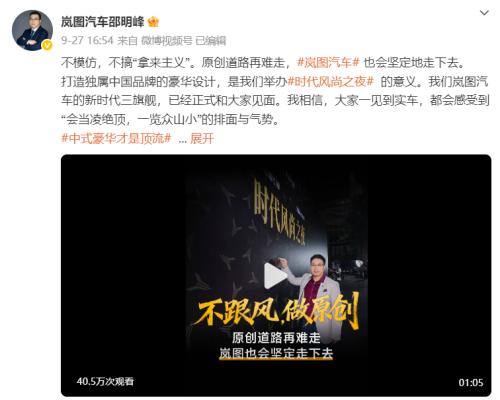 他以岚图知音为例说明:“家用SUV一定要空间实用。全新岚图知音不在空间上做牺牲,坚持短前后悬,让车身每一寸都服务于‘能装好用’。”