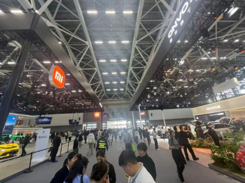 同样吸引大量观众的还有蔚来展台。而曾经需要排队参观的理想和小米展台,今年却显得冷清。小米和对面乐道展台人气对比非常明显。