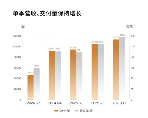 尽管面临行业周期与内部调整的双重压力,公司对第四季度仍保持稳健预期,预计交付量在10万至11万辆之间,营收指引为265亿至292亿元。