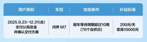 相比于问界M7为提车等待周期超过10周(70个自然日)的用户每天发放200元补贴,至高补贴10000元的补偿方案,理想汽车这一方案显得诚意不足,用户获得的每日补偿实际上只有问界M7的三分之一。