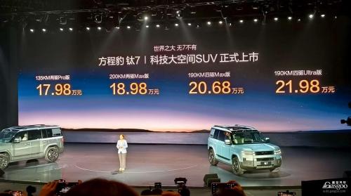 上市80天累计销量便突破5万台,其中11月单月销售达24,019辆,连续两月稳居2万台以上,让方程豹钛7成为“方盒子”市场中最受瞩目的新热门车型。