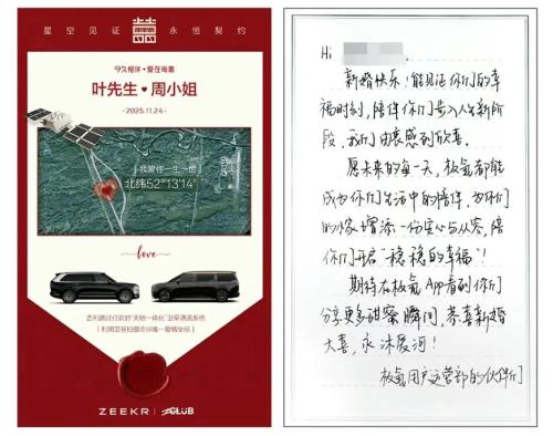 而除了卷技术以外,极氪在如今这个车企广告满天飞,各种豪华宣传铺天盖地的时代干出了一件惊掉人下巴,却又暖到人心窝里的事儿,让用户真真切切感受到了极氪品牌的温度与浪漫。