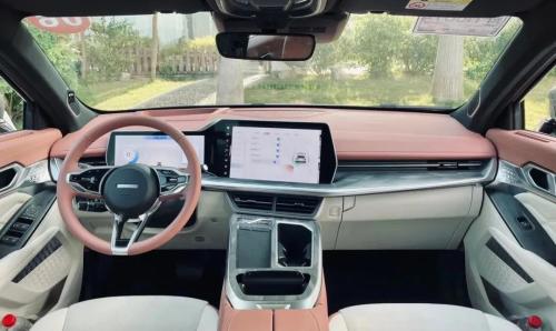 内饰更是简洁明快,几乎没有实体按键,12.3+14.6寸双联曲面星河屏,采用个性化异形面板造型,配合富有科技感虚拟按键,并采用非常少见的怀挡设计,坐进车内仿佛开启向未来的时空穿越。