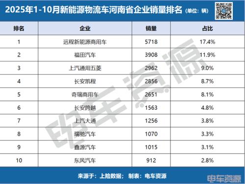从销量结构看,无论是今年10月,还是1-10月,郑州新能源物流车销量在河南市场占据半壁江山。