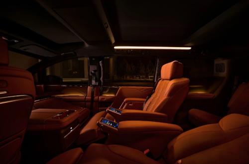 并且娱乐屏还支持蓝牙麦克风,以及有线/蓝牙连接SWITCH、游戏手柄,配合Bose悦享音响系统,提升使用感受。此外,该车还将配备50英寸全景AR-HUD抬头显示以及二排两个5.5英寸智慧移动管家屏,可控制二排座椅、空调、冰箱,支持小憩模式。