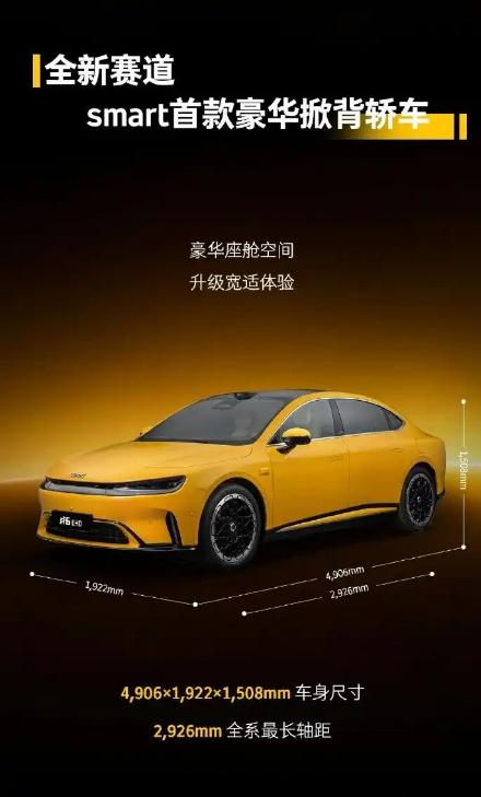 12月6日,smart宣布精灵6号亮相工信部公告,为其首款中型轿车,搭载插电式混合动力系统,全系最长轴距2926mm。从公布的信息来看,这款车尺寸很大,可以说是史上最大smart,接近5米的车长直接来到了Model 3与小米SU7的主战场。