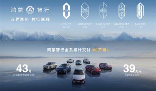 刚刚结束的11月,鸿蒙智行旗下的五大品牌累计实现交付81864台,若以造车新势力为分类标准,该成绩稳居行业首位;即便纳入所有汽车厂商进行排名,也成功跻身国内前十强,位列第八。进入12月不久,鸿蒙智行便官宣旗下“五界”车型累计销量已突破100万台,而达成这一里程碑仅耗时43个月,成为中国新势力品牌中实现百万交付最快的一次纪录。