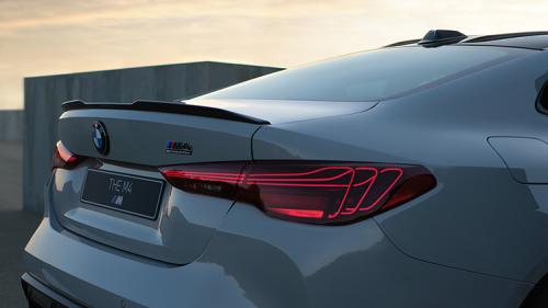 尾灯采用了源于全球限量1000台的高性能特别版车型BMW M4 CSL上所独有的激光尾灯,灯组内部采用激光二极管对玻璃纤维进行均匀照射,营造出细腻而立体的三维光图形效果,点亮后视觉效果极为惊艳。同时,新车还提供了双边四出100mm的排气尾管、增加银色镶边的黑色高光M车标、全新的前19英寸后20英寸锻造轮毂。
