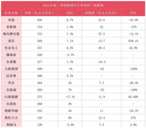 与之形成鲜明对比的,是东方供应链的蓬勃动能。背靠中国这一全球最大且加速转型的汽车市场,并乘着电动化、智能化的确定性浪潮,中国零部件企业普遍迎来营收、利润双增长。日韩等零部件企业,则依托有利的外汇环境和政府补贴实现了亮眼表现。