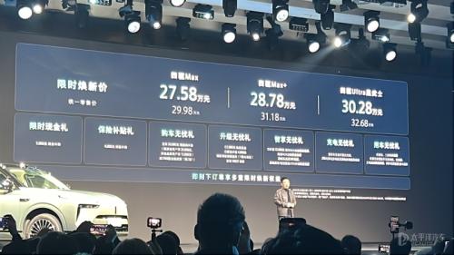 新车采用“科技豪华+家庭友好”的设计理念,配备15.6英寸中控屏、27英寸彩色多点触控屏和12.3英寸全彩仪表的三屏联动系统。新车配备全新一代CP Master辅助驾驶系统,配英伟达Thor-U芯片,新增辅助驾驶小蓝灯、阻尼预瞄以及灯光系统升级等配置,动力上继续搭载1.5T双电机插混系统,WLTC纯电续航最高220km。