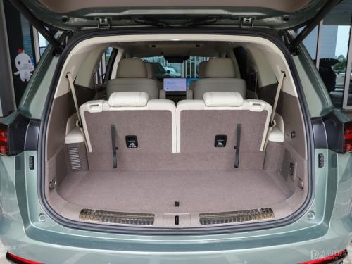 内饰方面,蓝山智能进阶版的内饰采用“科技豪华+家庭友好”的设计理念。在2+2+2的六座布局中,第二排拥有1米级腿部空间,搭配Nappa真皮座椅、双电动腿托与10方向电动调节。第三排座椅表现突出,腿部空间达826毫米,头部空间为851毫米,使第三排从“应急位”升级为“舒适位”。后备箱开口宽大,地板平整,第三排座椅放倒后容积可扩展至1150升,能够满足家庭出行装载需求。