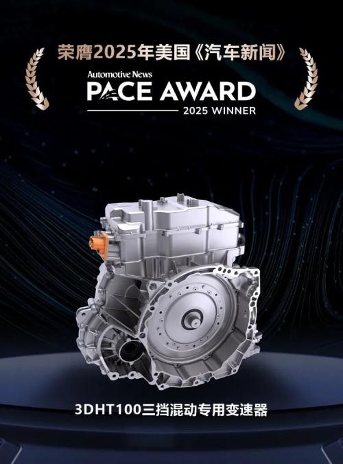 作为浩思动力的核心产品之一,3DHT100混动变速器在2025年代表浩思动力混动解决方案之一荣获美国《汽车新闻》PACE大奖,这一第三方独立奖项被誉为全球汽车界奥斯卡奖。3DHT100的核心技术优势在于行业独创的三挡串并联架构与嵌入式行星齿轮设计,以“全球最小轴向长度”挑战“最大输出扭矩”,以354mm的轴向长度,4920N*m的超大轮端扭矩,实现了行业领先的扭质比:41N*m/kg。