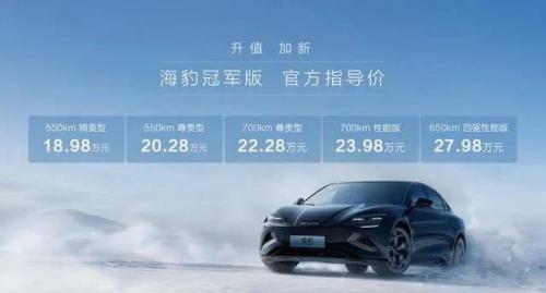 目前比亚迪应用CTB电池车身一体化技术的车型为海豹,后续也有望被应用到更多的新车型中。而在5月10日,海豹还推出了冠军版车型,共推出5款配置,售价18.98万-27.98万元。