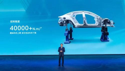 其次,由于电池以横向排列于底盘中,相当于给整车增加了一排纵梁,大幅提升了车身刚性,车身扭转刚度可以轻松超过40000N·m/°,可以满足“超五星”的安全标准,正碰结构安全提升50%,侧碰结构安全提升45%。